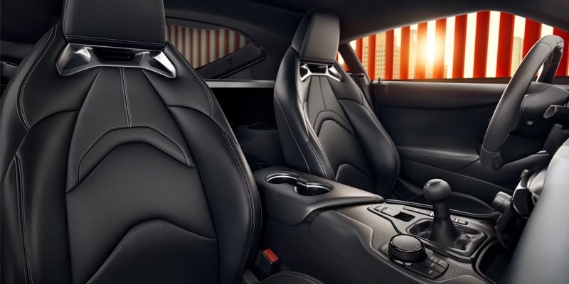 Una pantalla de alta resolución de 8,8 pulgadas descansa en el panel de instrumentos del GR Supra, mientras que un tacómetro tridimensional se sitúa en el centro, mostrando la velocidad del motor, la selección de marcha actual y la marcha sugerida. Está flanqueado por pantallas que se pueden personalizar para mostrar la velocidad, la navegación y otra información clave para la conducción.