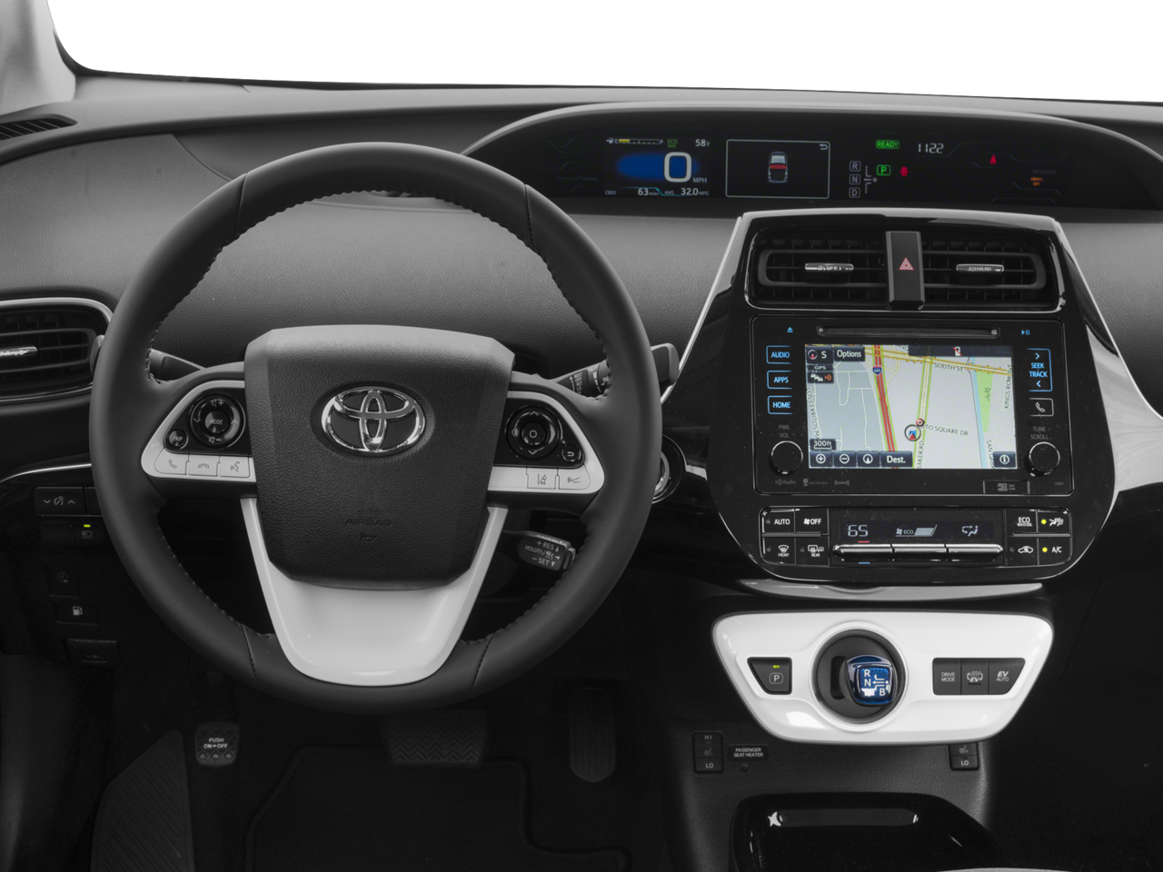 - Aplicaciones Prime: gestión remota de la carga, mapa de estaciones de carga, panel de control ecológico, climatización remota y localizador de vehículos con 3 años de prueba gratuita. El acceso a las aplicaciones Prius Prime requiere una suscripción activa a Safety Connect tras los 3 años de prueba gratuita. Para más detalles, consulte toyota.com/safety-connect.