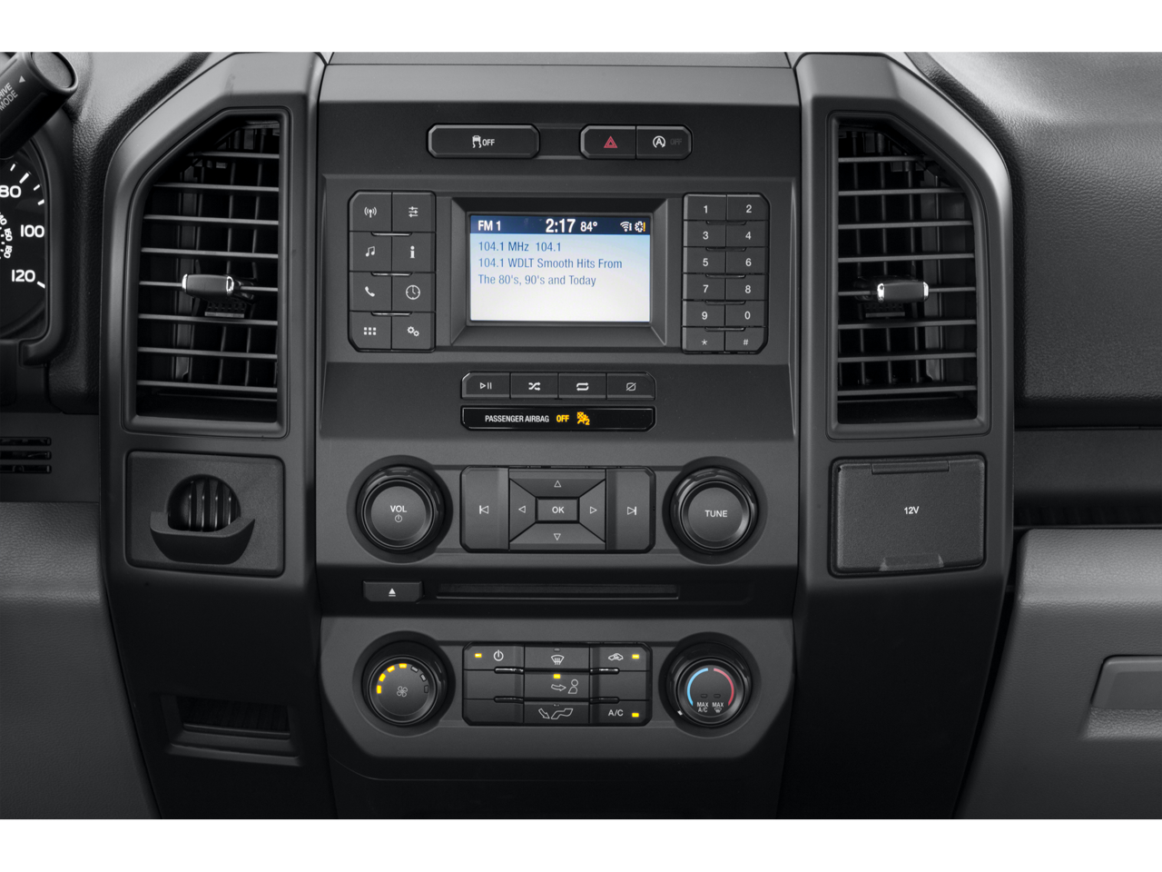 - Radio con reloj, control de volumen con compensación de velocidad, controles en el volante, activación por voz, sistema de datos de radio y control de memoria externa SYNC 3.