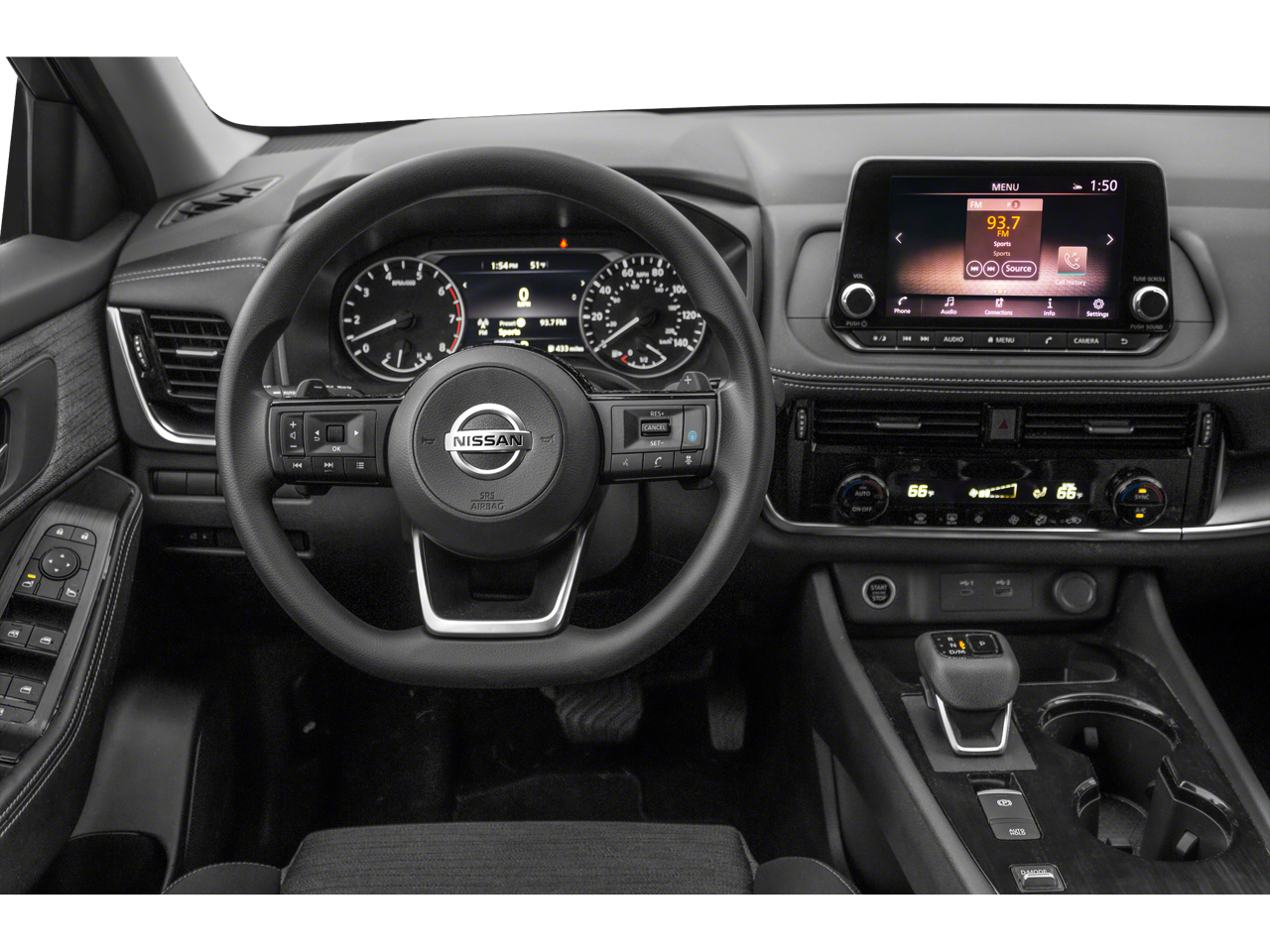 - Radio: AM/FM -inc: 6 altavoces, NissanConnect con Apple CarPlay y Android Auto, pantalla a color de 8" con control multitáctil, radio satelital SiriusXM, 2 puertos USB iluminados (1 tipo A, 1 tipo C), sistema de teléfono manos libres Bluetooth®, transmisión de audio a través de Bluetooth®, asistente de mensajes de texto manos libres.