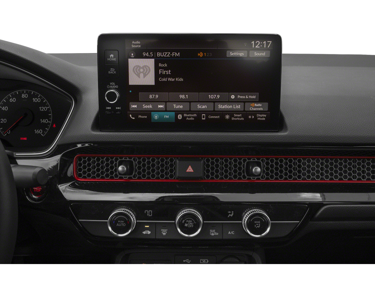 - Radio: Sistema de sonido premium Bose, que incluye: 12 altavoces con subwoofer, pantalla táctil a color de 9 pulgadas, compatibilidad inalámbrica con Apple CarPlay, compatibilidad inalámbrica con Android Auto, SiriusXM, radio HD, Bluetooth® HandsFreeLink, transmisión de audio por Bluetooth®, HondaLink, función de mensajes de texto SMS, compensación de volumen sensible a la velocidad (SVC), sistema de datos de radio (RDS), interfaz USB de 2,5 amperios para smartphone/audio (1 puerto en la consola delantera) y puerto de carga USB de 2,5 amperios (1 puerto en la consola delantera).