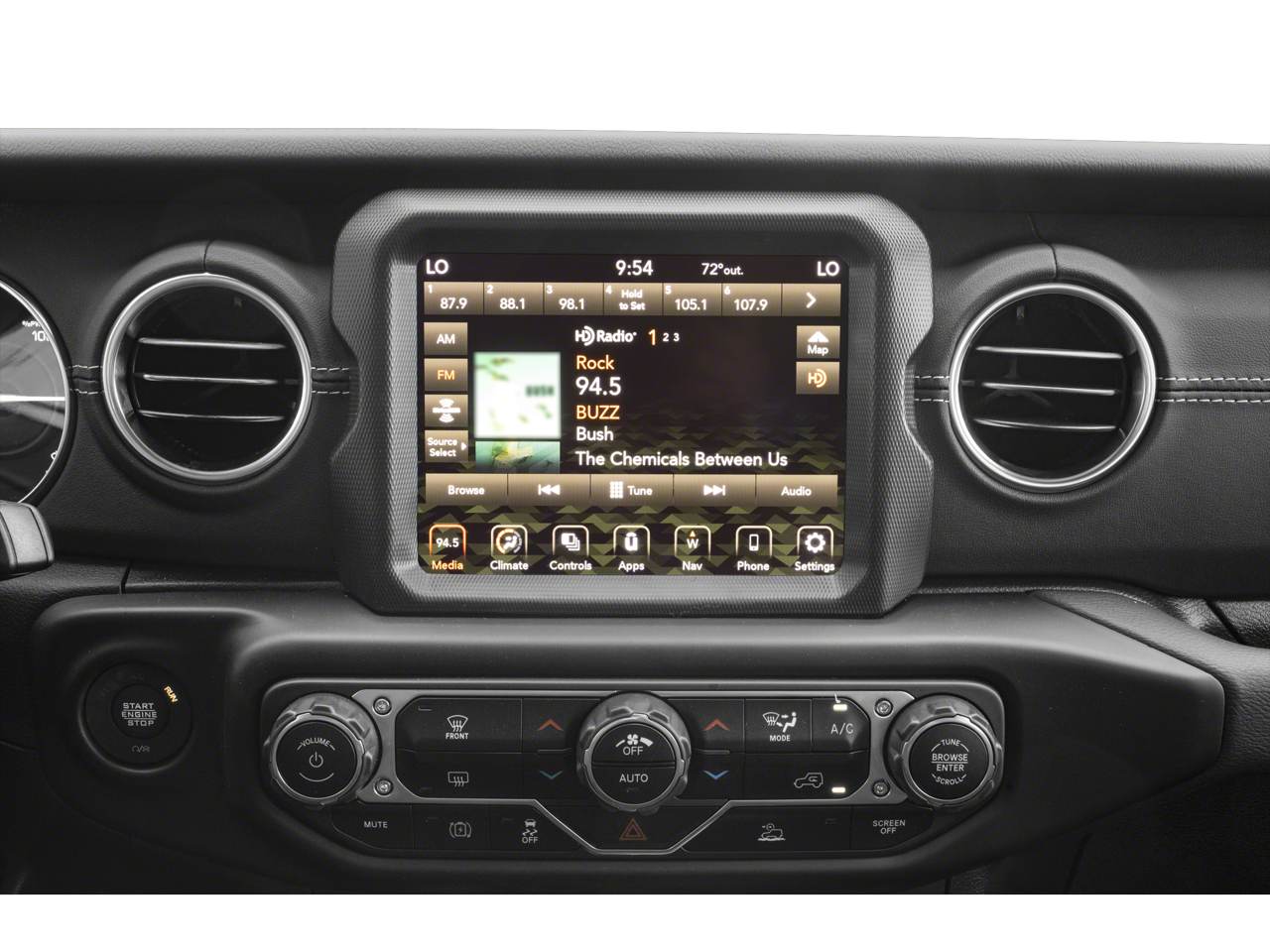 - Radio con búsqueda y exploración, reloj, control de volumen con compensación de velocidad, conector auxiliar de entrada de audio, controles en el volante, activación por voz, sistema de datos de radio y control de memoria externa Uconnect.