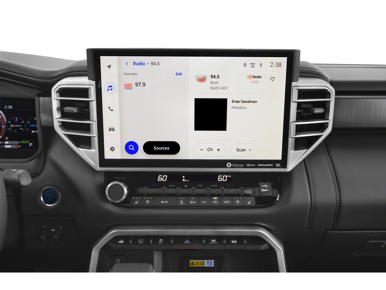 - Radio: Audio premium con JBL: incluye pantalla táctil de 14 pulgadas, 12 altavoces JBL (incluidos subwoofer y amplificador), compatibilidad con Android Auto y Apple CarPlay, y SiriusXM con suscripción de prueba al plan Platinum durante 3 meses. Para obtener más información, visite toyota.com/audio-multimedia. Servicios conectados - Safety Connect con hasta 10 años de prueba, Remote Connect con 1 año de prueba, Drive Connect con 1 año de prueba, Service Connect con hasta 10 años de prueba, Wi-Fi Connect con hasta 3 GB en 1 mes de prueba. Para más detalles, consulte toyota.com/connected-services.
